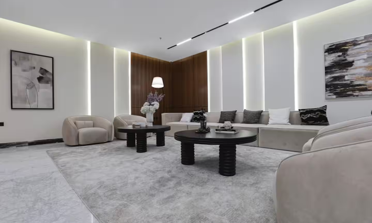 • غرفة معيشة واسعة بتصميم عصري