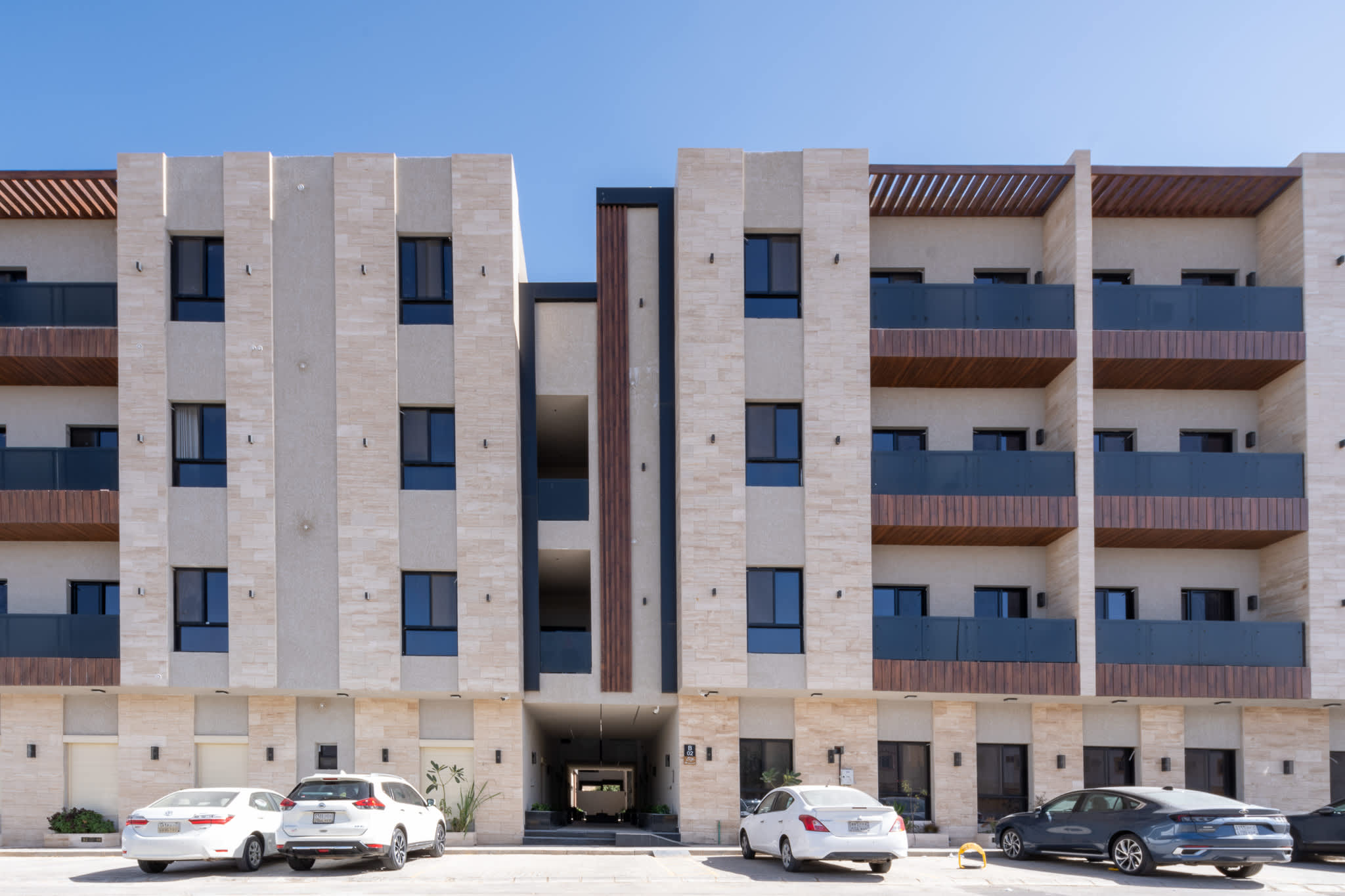 كما يمكنهم الاستفادة من الموقف الخاص داخل المبنى، إضافة إلى الدخول الذاتي عبر الأنظمة الذكية لبوابة المجمع وباب الشقة.