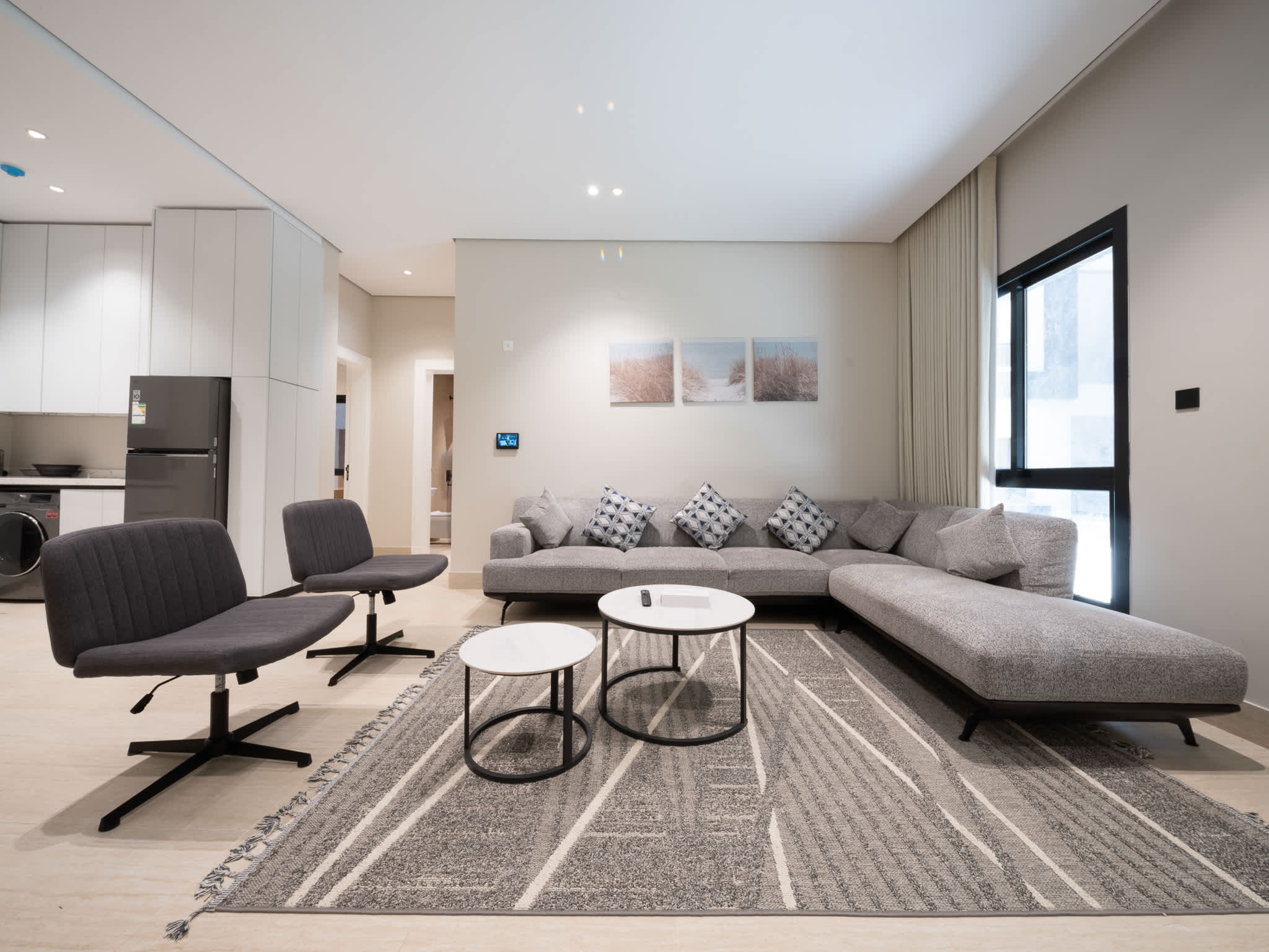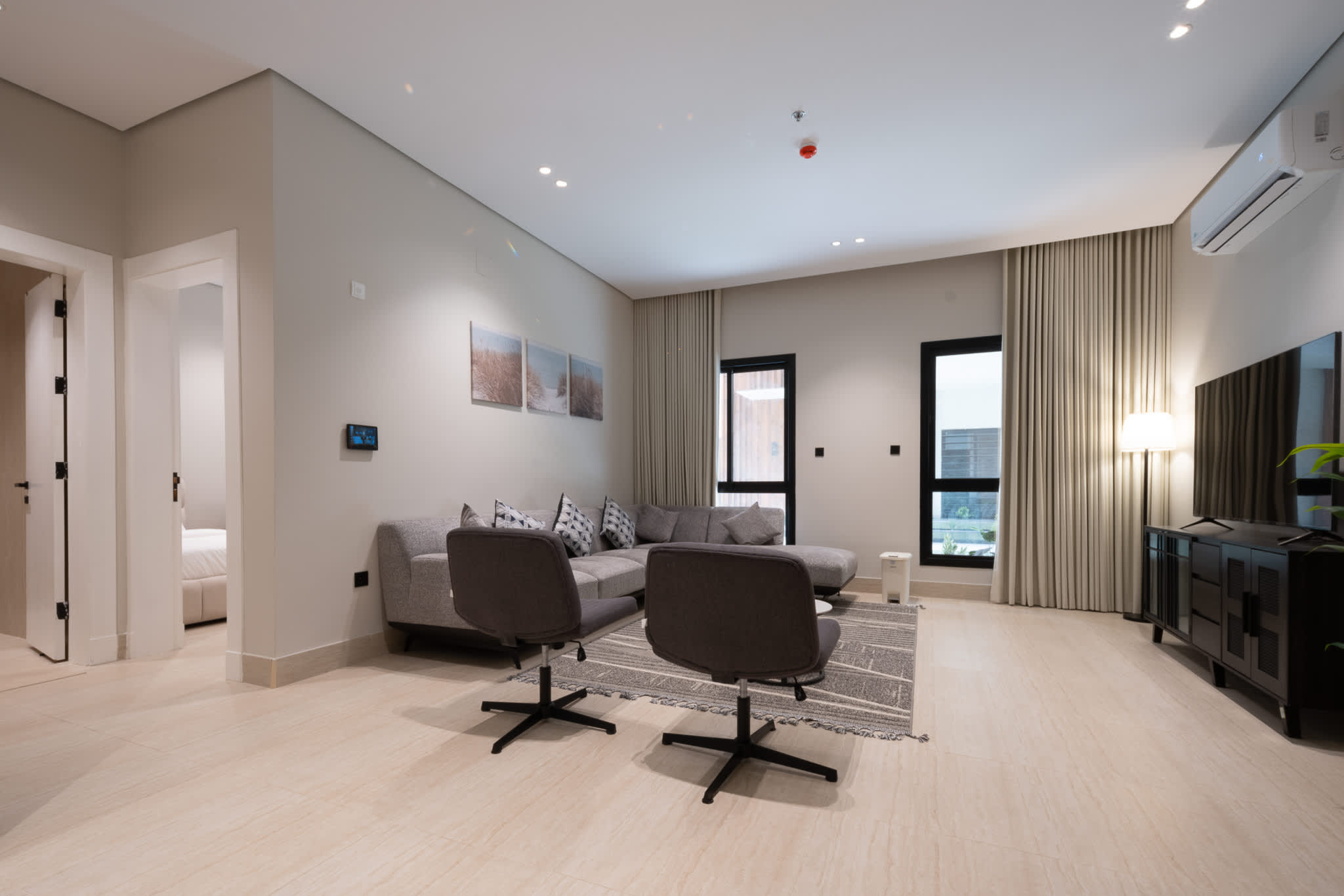 المساحات مصممة لتكون عملية ومناسبة للإقامة المتوسطة والطويلة، مع أجواء هادئة داخل مجمع سكني منظم.